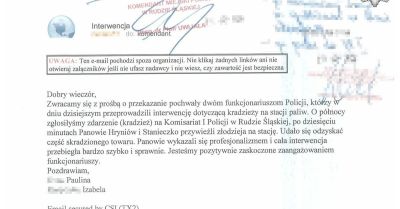 Policjanci z Rudy Śląskiej otrzymali podziękowania za błyskawiczną interwencję po kradzieży na stacji paliw. Sprawca szybko zatrzymany, część...